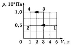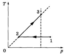 27 | Идеальный одноатомный газ в количестве 1 моль сначала изотермически расширился (T1 = 300 К). Затем газ изохорно нагрели, повысив его давление в 3 раза (см. рисунок). Какое количество теплоты получил газ на участке 2-3?
