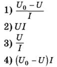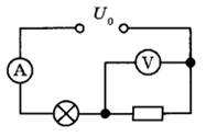 19 | Электрическая цепь, схема которой изображена на рисунке, подключена к аккумулятору. Напряжение между полюсами аккумулятора равно U0, а показания идеальных амперметра и вольтметра равны соответственно I и U.
