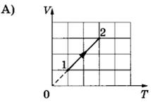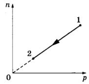 12 | При переводе идеального газа из состояния 1 в состояние 2 концентрация молекул n пропорциональна давлению p (см. рисунок). Масса газа в процессе остаётся постоянной.
