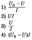 19 | Электрическая цепь, схема которой изображена на рисунке, подключена к аккумулятору. Напряжение между полюсами аккумулятора равно U0, а показания идеальных амперметра и вольтметра равны соответственно I и U.