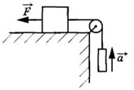25 | Груз массой 1 кг, находящийся на столе, связан лёгкой нерастяжимой нитью, переброшенной через идеальный блок, с другим грузом. На первый груз действует горизонтальная постоянная сила F, равная по модулю 10 Н (см. рисунок). Второй груз движется из состояния покоя с ускорением 2 м/с2, направленным вверх. Коэффициент трения скольжения первого груза по поверхности стола равен 0,2. Чему равна масса второго груза?