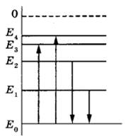 21 | На рисунке изображена упрощённая диаграмма нижних энергетических уровней атома. Стрелками отмечены некоторые возможные переходы атома между этими уровнями.