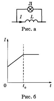 24 | Параллельно катушке индуктивности L включена лампочка (см. рис. а). Яркость свечения лампочки прямо пропорциональна напряжению на ней. На рис. б представлен график зависимости силы тока I в катушке от времени t. Сопротивлением катушки пренебречь. Опираясь на законы физики, изобразите график зависимости яркости свечения лампочки от времени.