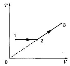 27 | Один моль одноатомного идеального газа совершает процесс 1-2-3, график которого показан на рисунке в координатах T-V. Известно, что в процессе 1-2 газ совершил работу 2,5 кДж, а в процессе 2-3 объём газа V увеличился в 3 раза. Какое количество теплоты было сообщено газу в процессе 1-2-3, если его температура Т в состоянии 1 равна 300 К?