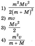 8 | Шайба массой m, скользящая по гладкой горизонтальной поверхности со скоростью v абсолютно неупруго сталкивается с покоящейся шайбой массой M. Удар центральный. Установите соответствие между физическими величинами и формулами, выражающими их в рассматриваемой задаче.