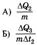 13 | В цилиндре под поршнем находится твёрдое вещество массой m. Цилиндр поместили в печь. На рисунке схематично показан график изменения температуры t вещества по мере поглощения им количества теплоты Q. Формулы А и Б позволяют рассчитать значения физических величин, характеризующих происходящие с веществом тепловые процессы.