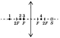 16 | Какая из точек (1, 2, 3 или 4) является изображением точки S, создаваемым тонкой собирающей линзой с фокусным расстоянием F (см. рисунок)?