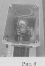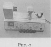 21 | На установке, представленной на фотографиях (рис. а — общий вид, рис. б — фотоэлемент), исследовали зависимость кинетической энергии фотоэлектронов от частоты падающего света. Для этого в прорезь осветителя помещали различные светофильтры. В первой серии опытов использовался светофильтр, пропускающий только синий свет, а во второй — пропускающий только зеленый.
