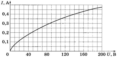 28 | На рисунке изображена зависимость силы тока в лампе накаливания от приложенного к ней напряжения. Найдите мощность, выделяющуюся на резисторе, включённом последовательно с лампой в сеть с напряжением 220 В, если сила тока в цепи равна 0,4 А.