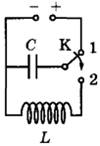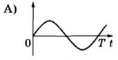 19 | Конденсатор колебательного контура длительное время подключён к источнику постоянного напряжения (см. рисунок). В момент t = 0 переключатель К переводят из положения 1 в положение 2. Графики А и Б представляют изменения физических величин, характеризующих электромагнитные колебания в контуре после этого (Т — период колебаний).