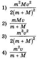 8 | Шайба массой m, скользящая по гладкой горизонтальной поверхности со скоростью v абсолютно неупруго сталкивается с покоящейся шайбой массой М. Удар центральный. Установите соответствие между физическими величинами и формулами, выражающими их в рассматриваемой задаче.