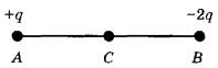 17 | Две маленькие закреплённые бусинки, расположенные в точках A и B, несут на себе заряды +q > 0 и -2q соответственно (см. рисунок).