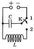 19 | Конденсатор колебательного контура длительное время подключён к источнику постоянного напряжения (см. рисунок). В момент t = 0 переключатель К переводят из положения 1 в положение 2. На графиках А и Б представлены изменения физических величин, характеризующих свободные электромагнитные колебания в контуре после этого (T — период колебаний).
