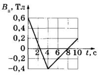 29 | Квадратная проволочная рамка со стороной l = 10 см находится в однородном магнитном поле с индукцией В. На рисунке изображена зависимость проекции вектора В на перпендикуляр к плоскости рамки от времени. Какое количество теплоты выделится в рамке за время t = 10 с, если сопротивление рамки R = 0,2 Ом?