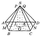 б) Прямая SO перпендикулярна прямой AD, прямые PL и SO параллельны, прямые MN и AD параллельны, значит, отрезок PL перпендикулярен отрезку MN и является высотой трапеции MPQN.