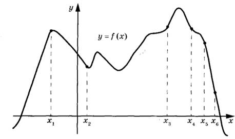 Задание 7. На рисунке изображён график функции y = f(x). На оси абсцисс отмечено шесть x1, x2, x3, x4, x5, x6. В ответе укажите количество точек (из отмеченных), в которых производная функции f(x) положительна.