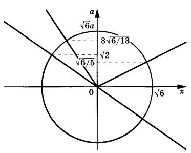 Эта система задаёт дугу окружности на плоскости с координатами (x; a) с центром в начале координат и радиусом √6. Координаты концов дуги окружности найдём, решив систему