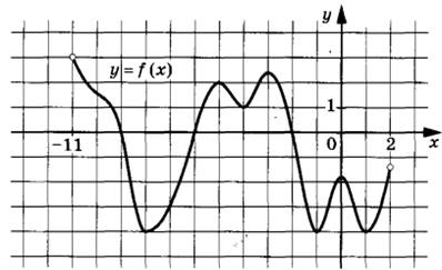 Задание 7. На рисунке изображён график функции y = f(x), определённой на интервале (-11; 2). Найдите количество точек, в которых касательная к графику функции у = f(x) параллельна прямой y = -4.