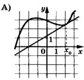 Задание 7. На рисунках изображены графики функций и касательные, проведенные к ним в точках с абсциссой x0. Установите соответствие между графиками функций и значениями производной этих функций в точке x0.