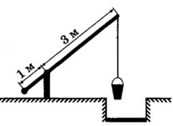 10 | На рисунке изображён колодец с «журавлём». Короткое плечо имеет длину 1 м, а длинное плечо — 3 м. На сколько метров опустится конец длинного плеча, когда конец короткого поднимется на 0,5 м?