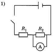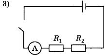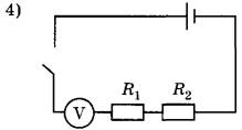 12 | Укажите правильную электрическую схему для измерения электрического напряжения на резисторе R2 при последовательном соединении двух резисторов R1 и R2.