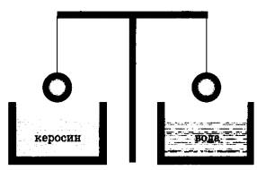 5 | Два одинаковых шара, изготовленных из одного и того же материала, уравновешены на рычажных весах (см. рисунок). Нарушится ли равновесие весов, если один шар опустить в воду, а другой — в керосин?