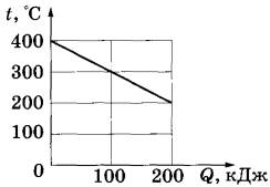 10 | На рисунке представлен график зависимости температуры твёрдого тела от отдаваемого им количества теплоты. Масса тела 4 кг. Чему равна удельная теплоёмкость вещества этого тела?