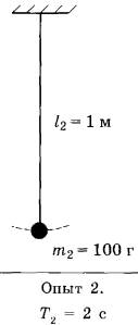 19 | Ученик провёл измерения периода колебаний физического маятника для двух случаев. Результаты опытов представлены на рисунке.