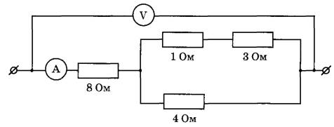16 | Определите показания вольтметра, если показания амперметра равны 0,5 А.