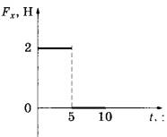 3 | Тело движется в положительном направлении оси Ох. На рисунке представлен график зависимости от времени t для проекции силы F , действующей на тело. В интервале времени от 0 до 5 с проекция импульса тела на ось Ох