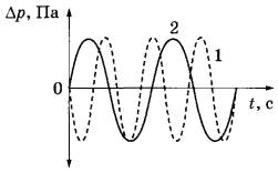 4 | На рисунке представлены графики изменения давления воздуха от времени для звуковых волн, издаваемых двумя камертонами. Сравните амплитуду изменения давления и высоту тона волн.