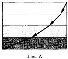 На каком(-их) из рисунков ход луча соответствует случаю, когда оптическая плотность пластин уменьшается сверху вниз? 1) только А 2) только Б 3) и А, и Б 4) ни А, ни Б