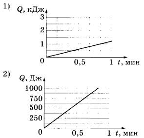 12 | Участок электрической цепи состоит из резистора, сопротивление которого равно 2 Ом, и амперметра, показания которого соответствуют силе тока I = 5 А. На каком рисунке правильно показан график зависимости количества теплоты Q, выделенного на этом резисторе, от времени t?