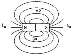 13 | Линия магнитного поля полосового магнита направлена строго вправо в точках
