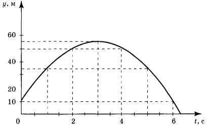 2 | На рисунке представлен график зависимости координаты от времени для тела, брошенного с высоты 10 м вертикально вверх. Чему равны путь L и модуль перемещения S тела в момент времени t = 2 с?