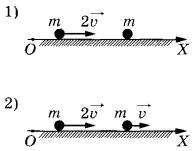 3 | Два пластилиновых шарика, двигаясь по гладкой горизонтальной плоскости, испытывают абсолютно неупругое соударение и слипаются. В каком случае (см. рисунки) модуль скорости шариков после соударения будет минимальным?