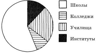 Задание 8. В городе из учебных заведений имеются школы, колледжи, училища и институты. Данные представлены на круговой диаграмме.