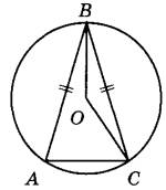 17 | Окружность с центром в точке О описана около равнобедренного треугольника ABC, в котором АВ = ВС и угол ABC = 25°. Найдите угол ВОС. Ответ дайте в градусах.