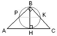 24 | Точка Н является основанием высоты ВН, проведённой из вершины прямого угла В прямоугольного треугольника ABC. Окружность с диаметром ВН пересекает стороны АВ и СВ в точках Р и К соответственно. Найдите ВН, если РК = 12.