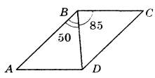 18 | Диагональ BD параллелограмма ABCD образует с его сторонами углы, равные 50° и 85°. Найдите меньший угол параллелограмма. Ответ дайте в градусах.