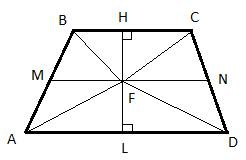 25 | На средней линии трапеции ABCD с основаниями AD и ВС выбрали произвольную точку F. Докажите, что сумма площадей треугольников BFC и AFD равна половине площади трапеции.