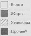 8 | На диаграмме показано содержание питательных веществ в нуге, кедровых орехах, семечках тыквы и кунжута. Определите по диаграмме, в каком продукте содержание жиров наименьшее.
