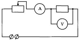 Задание 23. Используя источник тока (4,5 В), вольтметр, амперметр, ключ, реостат, соединительные провода, резистор, обозначенный R2, соберите экспериментальную установку для исследования зависимости силы электрического тока в резисторе от напряжения на его концах.