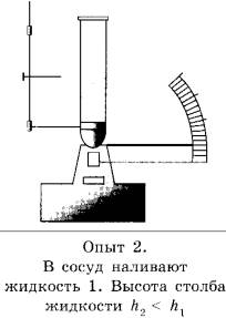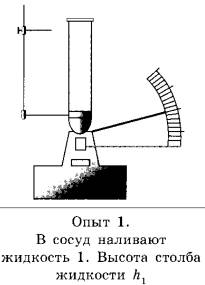 19 | Учитель провёл опыты с прибором, предложенным Паскалем. В сосуды, дно которых имеет одинаковую площадь и затянуто одинаковой резиновой плёнкой, наливается жидкость. Дно сосудов при этом прогибается, и его движение передаётся стрелке. Отклонение стрелки характеризует силу, с которой жидкость давит на дно сосуда. Условия проведения опытов и наблюдаемые показания прибора представлены на рисунках.