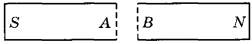 13 | Стальной полосовой магнит ломают пополам. Каким магнитным полюсам будут соответствовать концы А и В на месте излома магнита?