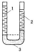 26 | В вертикальные сообщающиеся сосуды поверх ртути (3) налиты различные жидкости. В один сосуд — столбик воды (1), а в другой — столбик спирта (2) высотой 25 см (см. рисунок). Определите высоту столбика воды, если разность уровней ртути в сосудах равна 5 см.