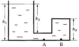 5 | Стеклянный сосуд, правое колено которого запаяно, заполнен жидкостью полностью ρ (см. рисунок). Давление, оказываемое жидкостью на дно сосуда в точке А, равно