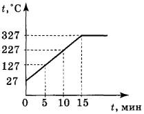 10 | На рисунке представлен график зависимости температуры от времени для процесса нагревания слитка свинца массой 1 кг. Какое количество теплоты получил свинец за 10 мин нагревания?