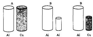 18 | Необходимо экспериментально установить, зависит ли выталкивающая сила от объёма погружённого в жидкость тела. Какой набор металлических цилиндров из алюминия (Al) и меди (Cu) можно использовать для этой цели?