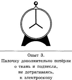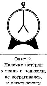 19 | Учитель на уроке, используя палочку, кусок ткани и электроскоп, последовательно провёл опыты по электризации. Условия проведения опытов и показания электроскопа представлены в таблице.